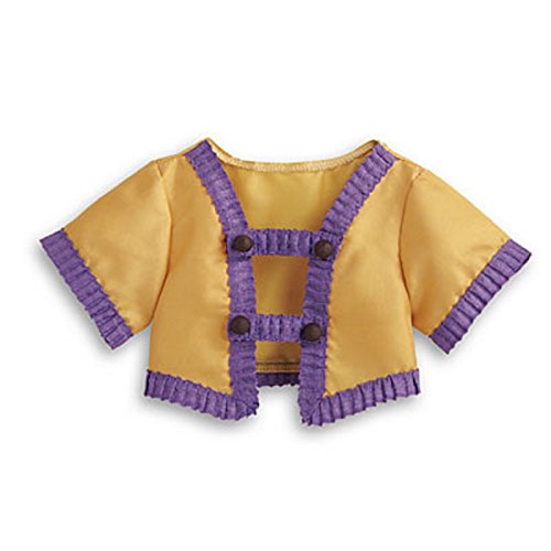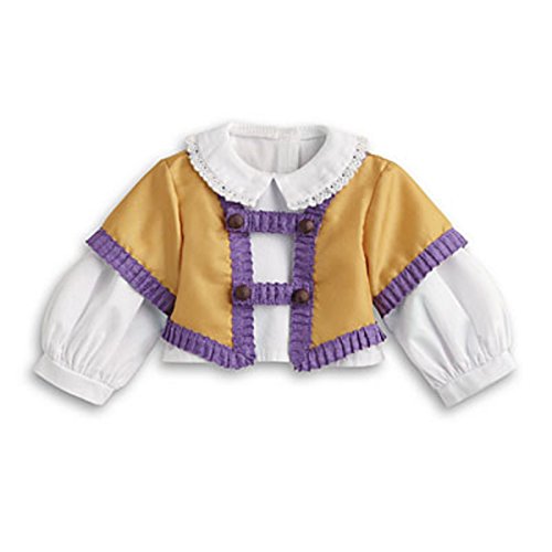 - A golden taffeta jacket, adorned with two rows of buttons and pleated-ribbon edging