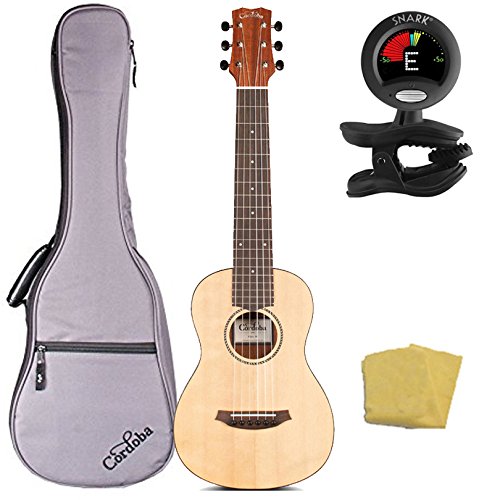 Studio : Cordoba Music Group Publisher : Cordoba Music Group Binding : Electronics Product Description The new Cordoba Mini M is the ultimate travel instrument, offering the playability of a full size guitar in a compact, lightweight body with an impressively loud voice. This miniature guitar features a solid spruce top paired with mahogany back and sides for a clear, complex tone. Its comfortable, thin U-shaped neck and 1.96" (50 mm) nut width offers the feel and string spacing of a full-size guitar. It has a scale length of 20" (510 mm), and is tuned just like a guitar - either in standard E or up a 4th to A (ADGCEa - recommended and factory spec for the most vibrant tone). The Cordoba Mini M is a perfect companion for road trips, vacations, and hanging out at home. Includes a Cordoba gig bag. 0