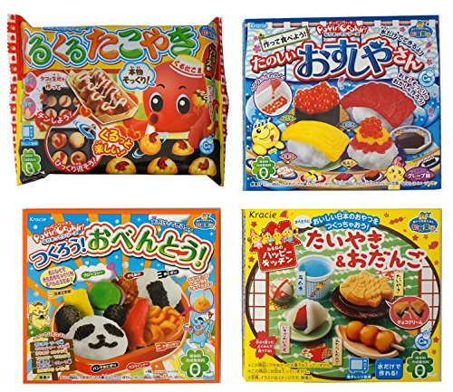 Assortment of 4 Kracie Popin Cookin & Happy Kitchen Kits "NT6000248" 4 Packs of DIY Candy Kit Ninjapo Package