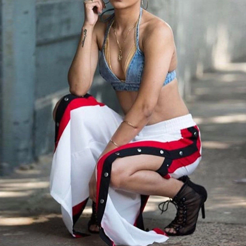 Model Number:Side split Buttons Wide Leg Panelled long pants