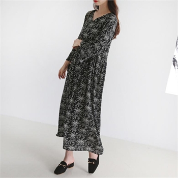 모던한 플로럴 패턴으로 여성스럽고 페미닌한 느낌을 전해주는 롱 원피스에요!