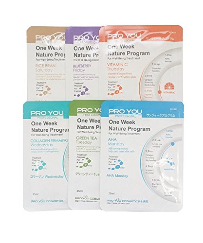 -. Feature : Skin vitalizing program to make skin healthier with various methods for a week (6 days) / Step 1: AHA Monday, Step 2: Green Tea Tuesday, Step 3: Collagen Firmming Wednesday, Step 4: Vitamin C Thursday, Step 5: Blueberry Friday, Step 6: Rice Bran Saturday / AHA components helps peel dead skin cells. Organic green tea and various relieving ingredients recoverskin from unhealthy environment. / Botanical collagen ingredients supply moisture and suppleness. Vitamin C ingredients vitalize and brighten skin. / Anti-Oxidative activity of blueberry extract makes skin younger and healthier. Rice bran components keep skin clearer and brighter, which maximizes the effect of the vitalizing program.
