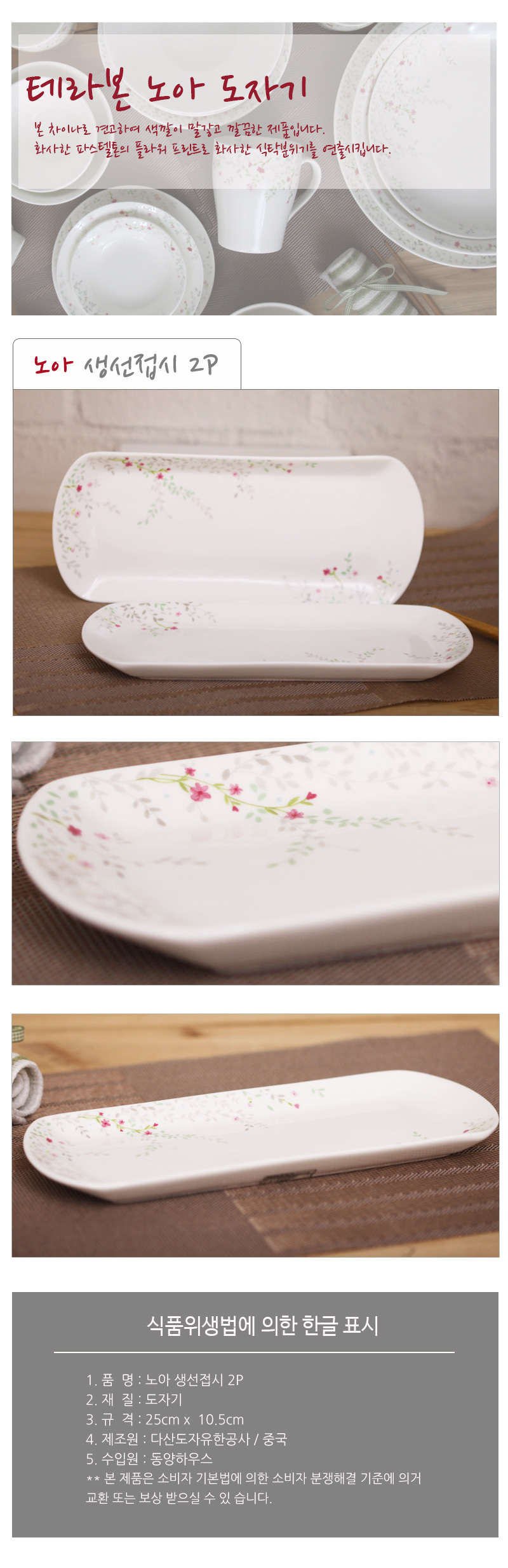 Long, crisp fish dish 2P porcelain bowl set Ceramic pottery Solid