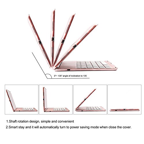 135 Degree Rotation and Multiple Angle Viewing iPad Keyboard Cover - shaft bracket design, allow the iPad Pro to be tilted up to 135 degree to provide the most comfortable viewing position, change your iPad to small Macbook in seconds