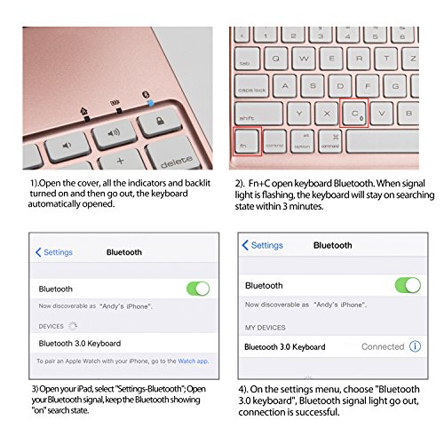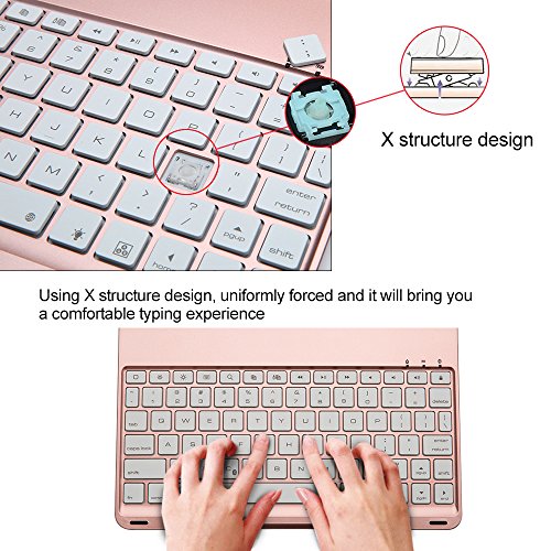 Slim, Comfortable, USB Rechargeable, Wireless Bluetooth iPad Pro Keyboard - with optimized key design for comfortable typing experience, the thickness of key only 4mm, super light for carry, one single charge gives you up to 60 hours of working time using keyboard, using Fn+C to connects the keyboard to your iPad automatically