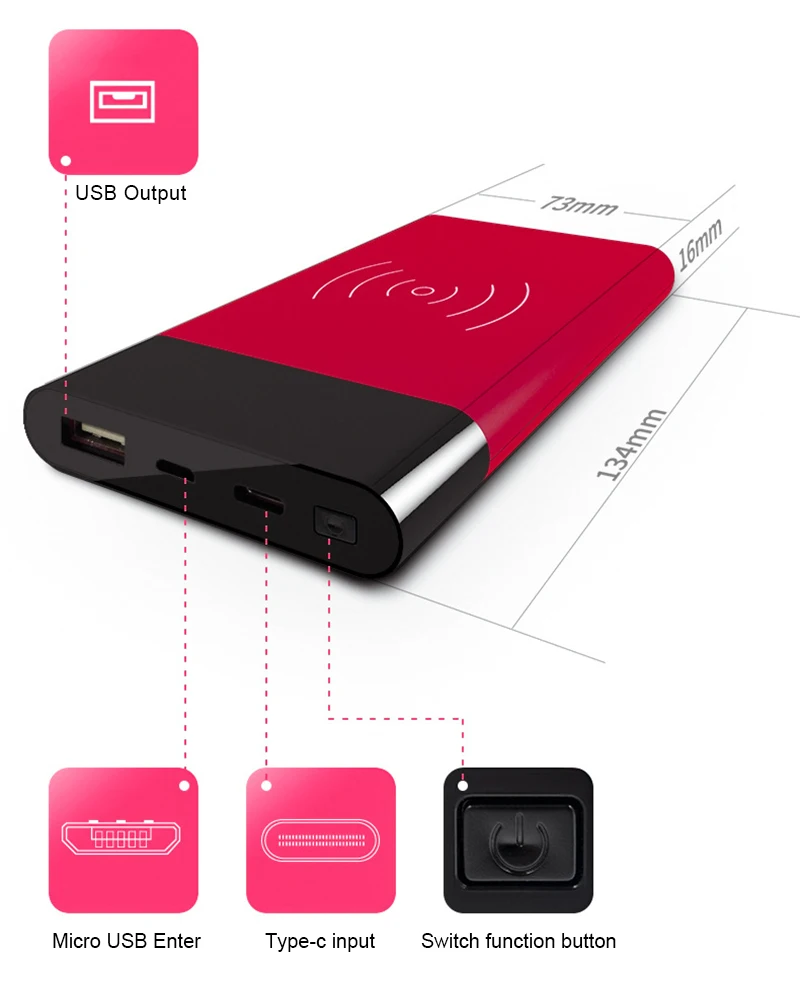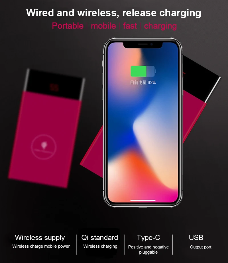 Model Number:Dual USB Power Bank Phone Qi Wireless Charger