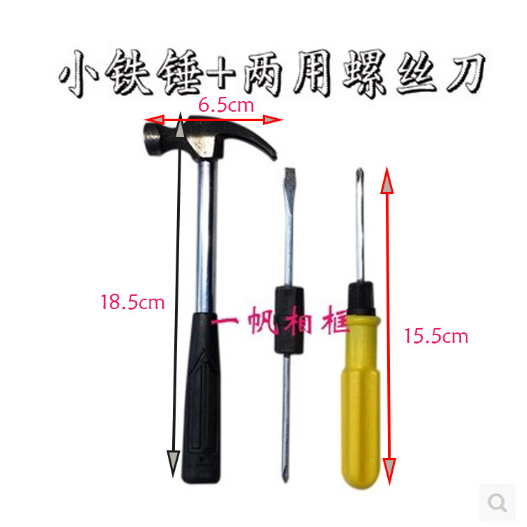 Steel Hammer Set with 2 screwdrivers and a plastic safe screwdriver holder