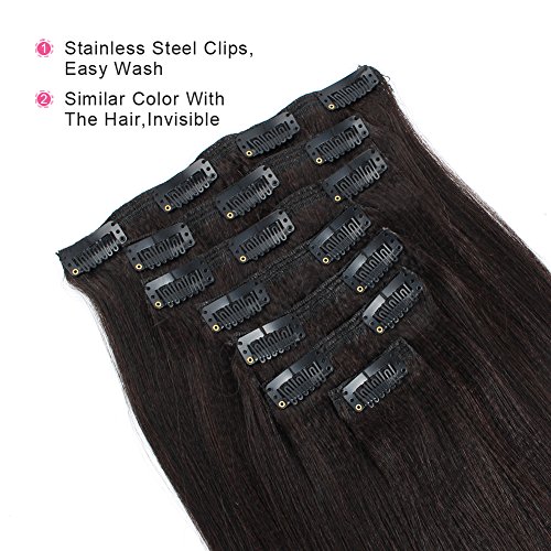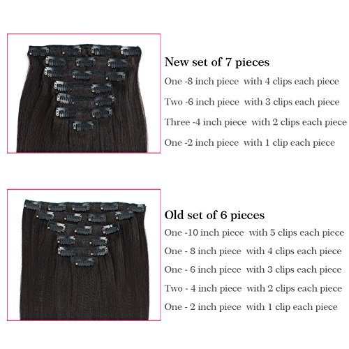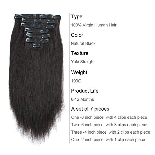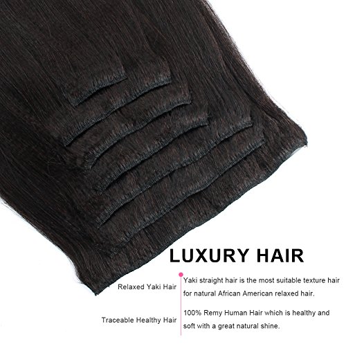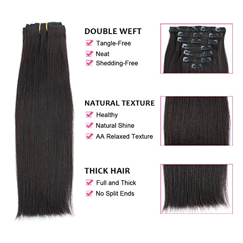 AmazingBeauty Real Remy Thick Natural Yaki Clip On Hair Extensions Black for African American Relax Hair 7 Pieces 16 Inch 120 Gram Per Set