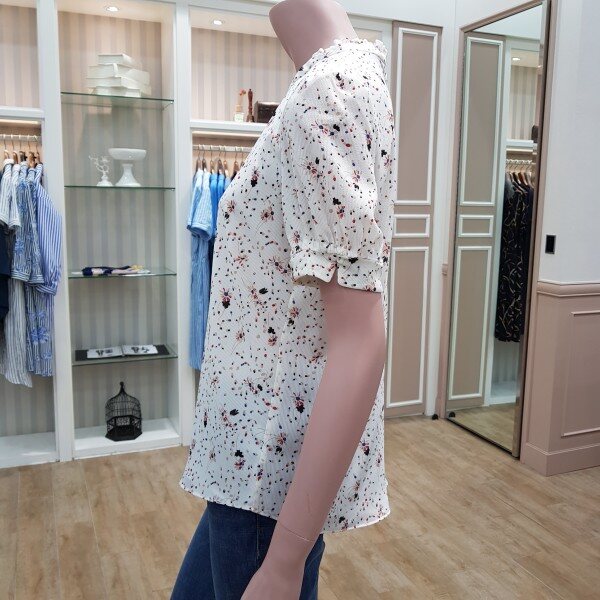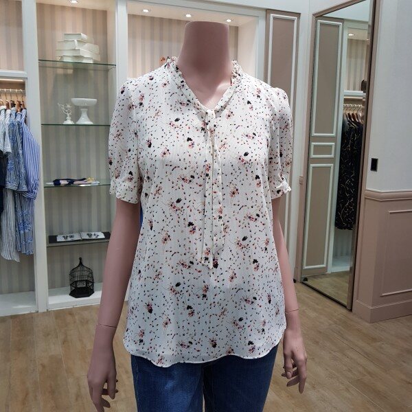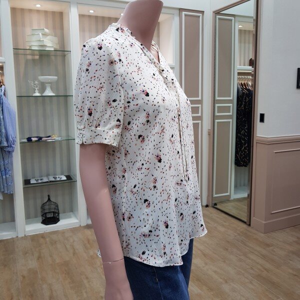 플 라워 프린트 쉬폰블라우스55기준 총장62cm