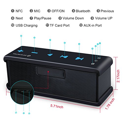 Zoweetek Portable Bluetooth Wireless Stereo Speaker with AUX Input and Dual Bass for Outdoors & Indoor, Supporting Echo Dot and TF ( Mirco SD ) Card