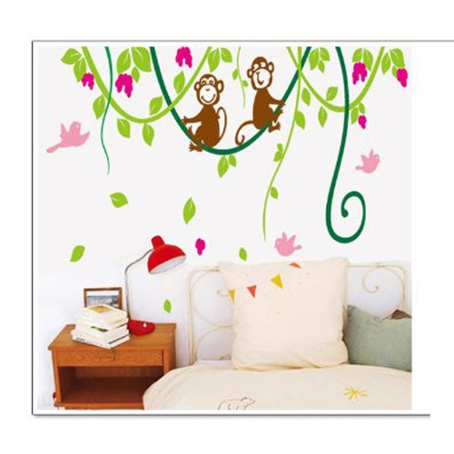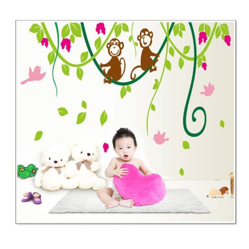 - Title : MZY LLC (TM) 110*130cm Large Green Tree Vine Monkey Flower Home Decor Removable Wall Sticker Decals Nursery Kids For Girls and Boys Children's Bedroom