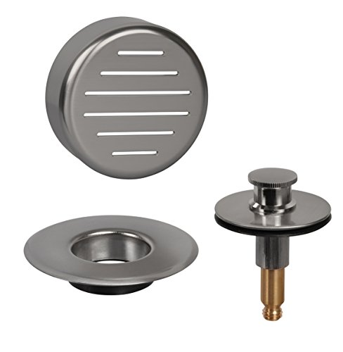 AB&A 60111 Press-In Strainer with "Classic" Overflow Plate and Push eN Lift Stopper, Satin Nickel Finish