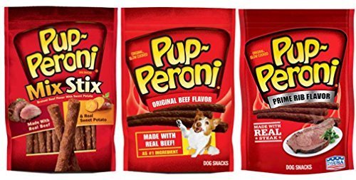 -. Binding : Misc. -. Brand : Pup-Peroni -. EAN : 0752454680658 -. Feature : Real beef is the #1 ingredient / Soft sticks can be broken for smaller dogs / Dogs Just Know; Reseable bag keeps them fresher longer / Packaging may vary / Convenient 3 flavor sampler - One bag of each -. Label : Big Heart Pet Brands -. Manufacturer : Big Heart Pet Brands -. PackageQuantity : 1 -. ProductGroup : Pet Products -. ProductTypeName : PET_SUPPLIES -. Publisher : Big Heart Pet Brands -. Studio : Big Heart Pet Brands -. Title : Pup-Peroni Real Beef Dog Snacks 3 Flavor Variety Bundle: (1) Pup-Peroni Original Beef Flavor, (1) Pup-Peroni P.R.Ime Rib Flavor, and (1) Pup-Peroni Beef & Sweet Potato Flavor, 5.6 Oz. Ea. (3 Bags Total) -. UPC : 752454680658
