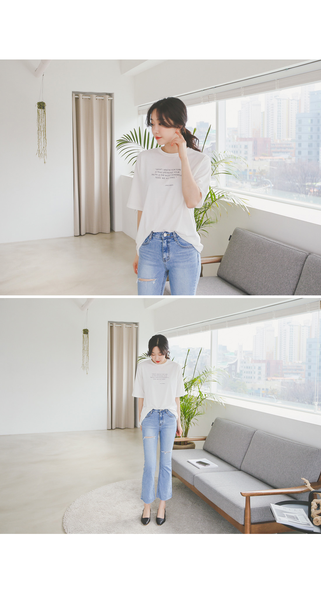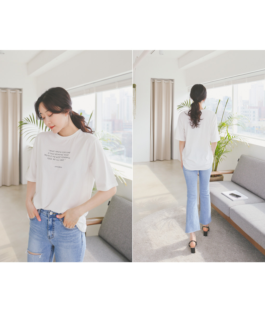 레터링 프린팅이 포인트인 티셔츠:)
