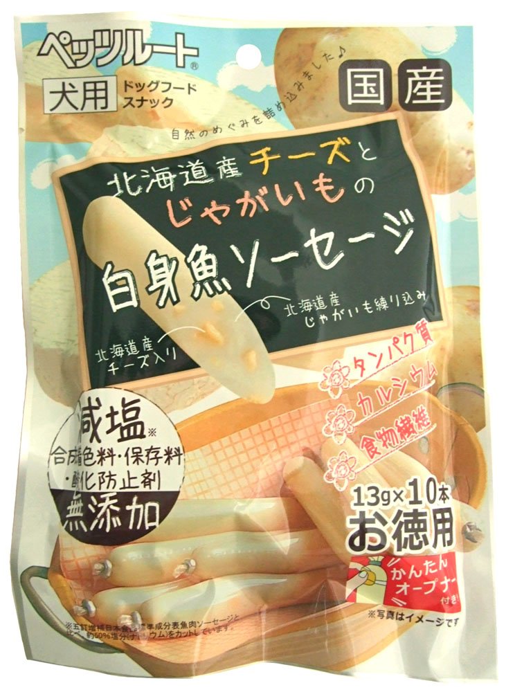 Domestically produced white fish sausage containing 10 cheeses from Hokkaido and potatoes from Hokkaido.