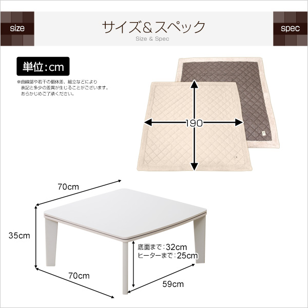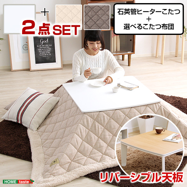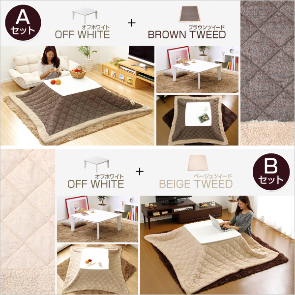 ●70cm幅・清潔感のあるオフホワイトのこたつテーブルとこたつ掛布団が付いた2点セット!