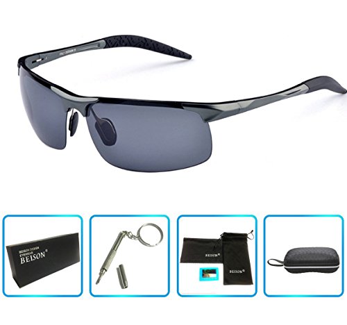 FRAME DESIGN -BEISON sunglasses use of advanced high-quality materials-aluminum-magnesium alloy , weights only 25 g , Durable and unbreakable frame