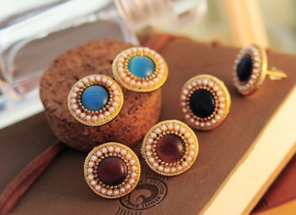 anting antik desain baru mutiara bulat Opal kristal emas untuk wanita perhiasan new design round antique pearl crystal opal gold stud earrings women jewelry JEW SJA0846535262 GHJ qty000