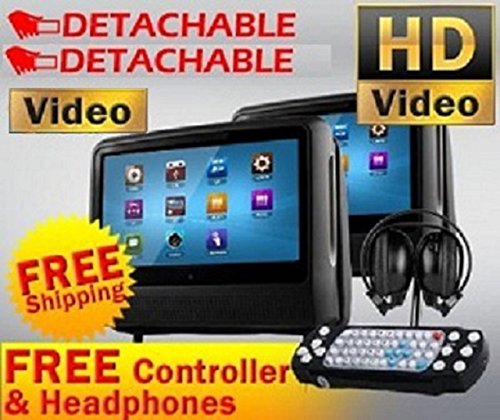 -. Title : 2017 Black Pair 9" High Resolution Digital Screen Detachable Headrest Dvd Player Monitors,Games and Wireless Headphones + Cigarette Adapters