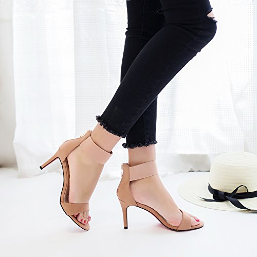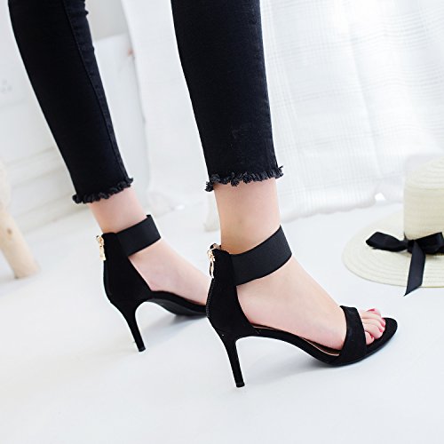 Studio : YLSZ-High heels Publisher : YLSZ-High heels Binding : Misc. Product Description Upper material: suede Sole material: rubber style: Korean version Toe shape: round head Heel height: high heel (6-8CM) Heel shape: thin with Popular elements: Shallow mouth Wearing style: After the zipper Features: wear-resistant, increased, eathable style: fashion sandals pattern: plain Sole: Clay shoes Inside Material: Leather Upper height: : Empty Color: black, pink Size: 34,35,36,37,38,39 0