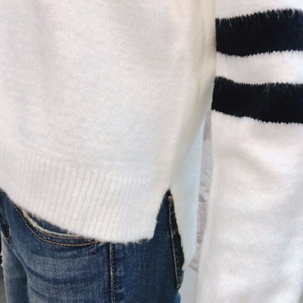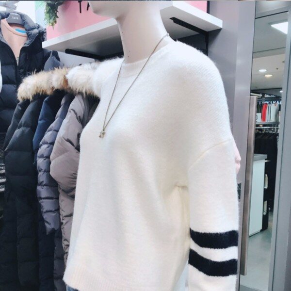 정말 부드럽고 앙고라느낌도 나는 부들부들 터치감의 니트입니다 단정하고 심플한듯하면서 소매배색이 눈에 띄는 포인트가 있어 청바지에 니트하나만 입어주셔도 멋스런니트입니다피부가예민하신분들은 니트소재에 민감하실수있는데이니트는 부드럽고 터치감이 정말 좋습니다