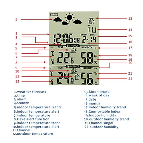 uxcell H146G 433MHz Multifunction Digital LCD Display Wireless Weather Station Humidity