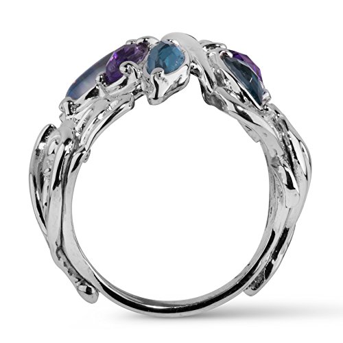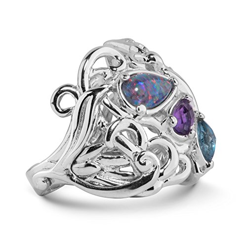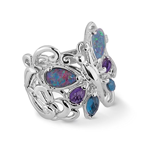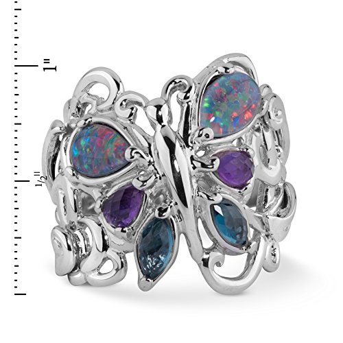 -. Feature : Sterling silver butterfly ring / 2.08ct Amethyst, opal, and London blue topaz gemstones / Ring measures 1" long x 1" wide / Designed and crafted in America with gemstones from around the world / Gemstone butterfly with prong- and bezel-set, faceted pear-shaped amethyst, marquise-shaped London blue topaz, and pear-shaped opal triplets. The triplets made up of glass top, opal center, and durable backing.