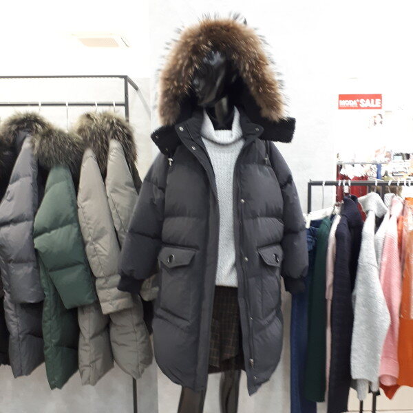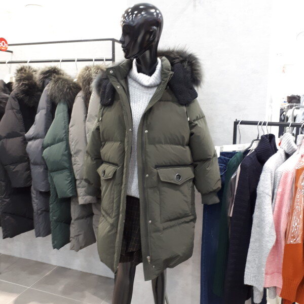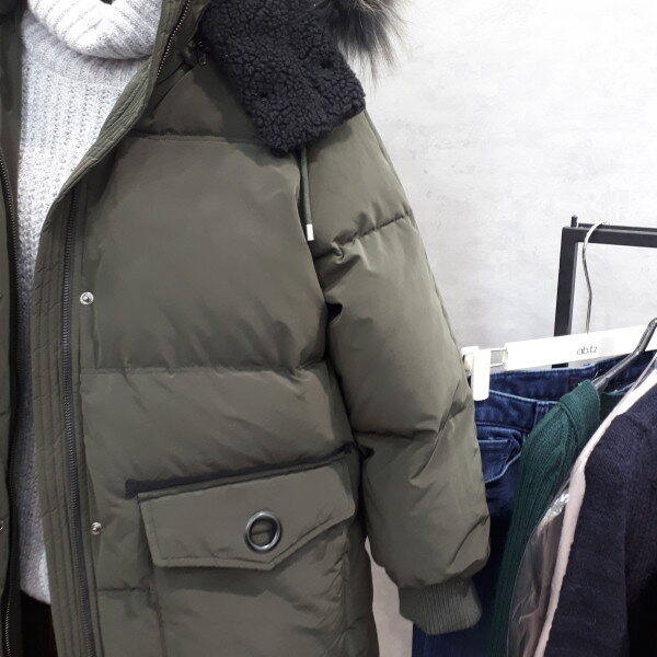 오퍼핏 소매 오리털 패딩입니다. 소매기장이 44사이즈 기장으로 약간 짧습니다