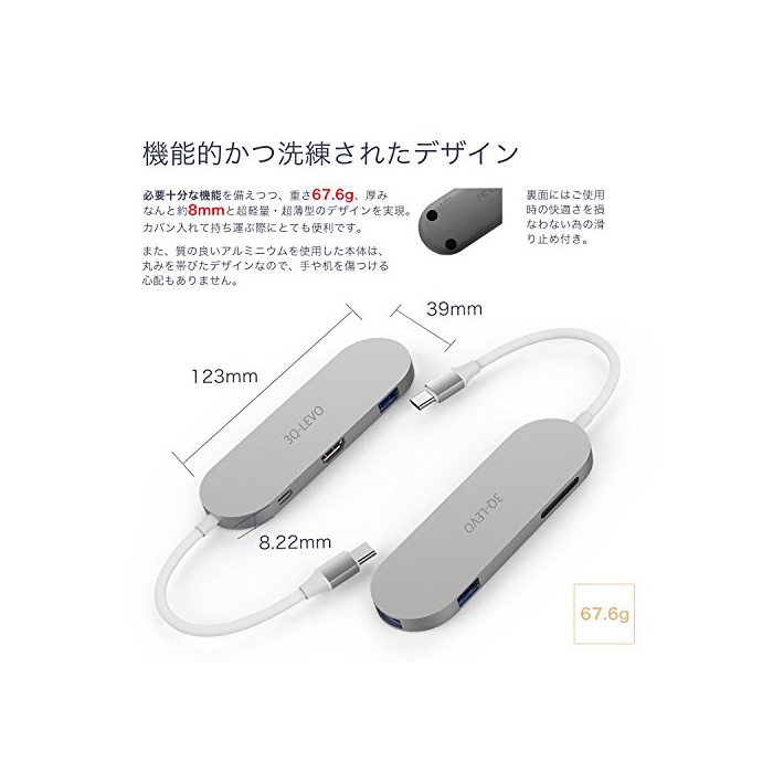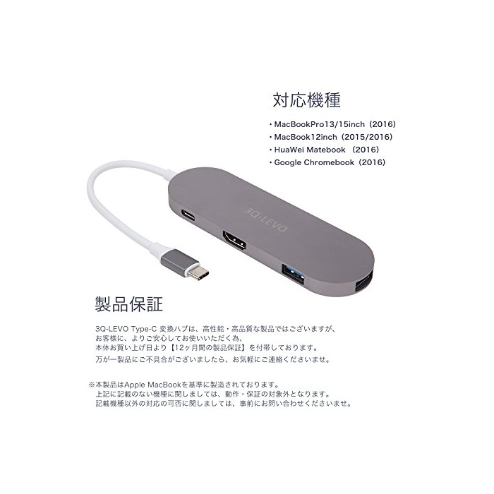 원본상품명: 3Q-LEVO USB Type-C ハブ HDMI 換 (6-in-1) 高速 超薄コンパクト