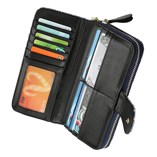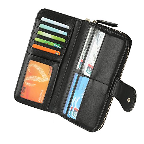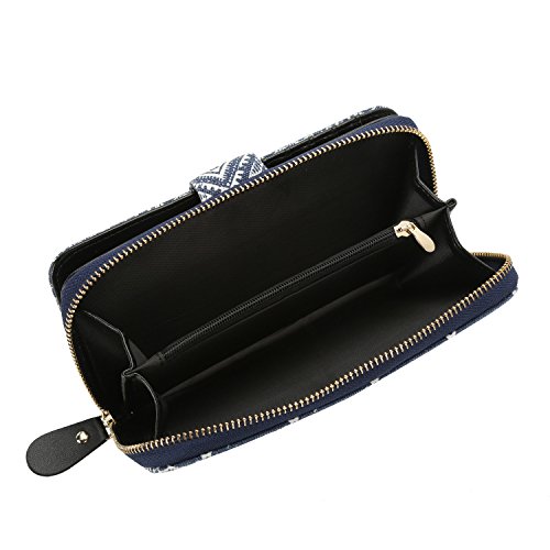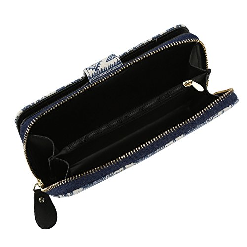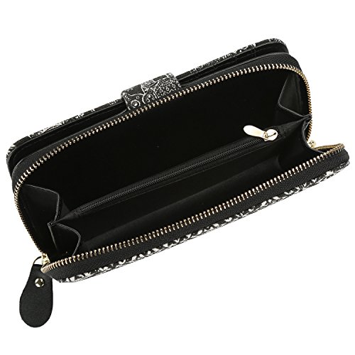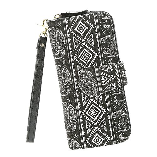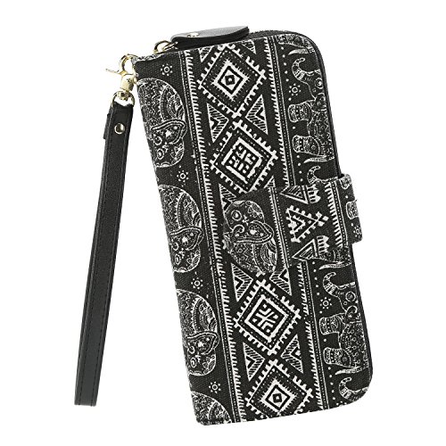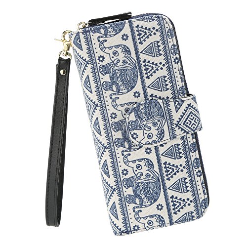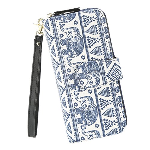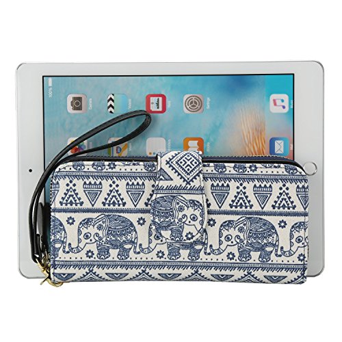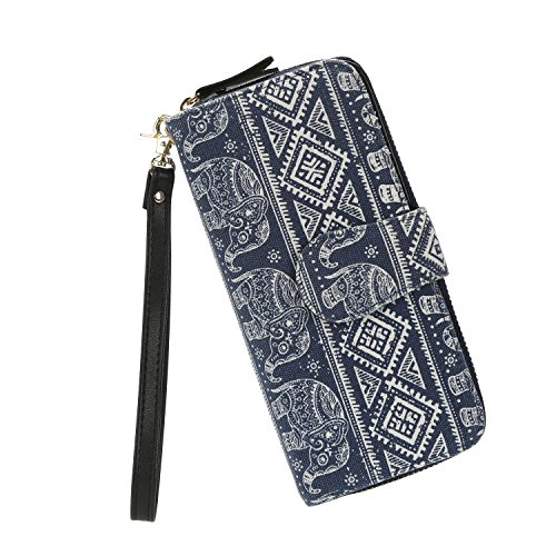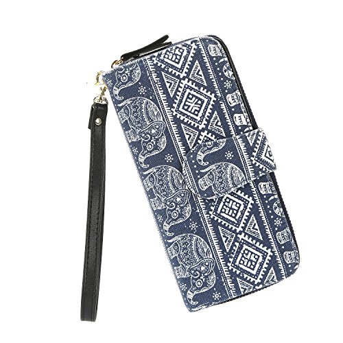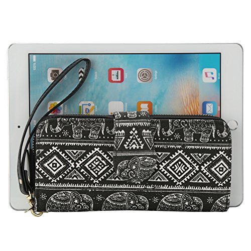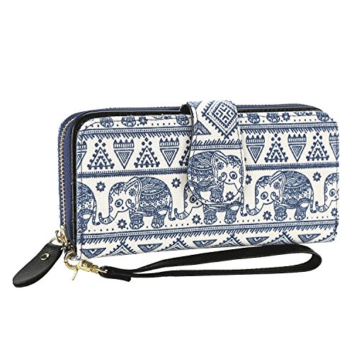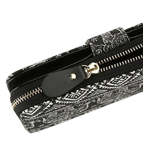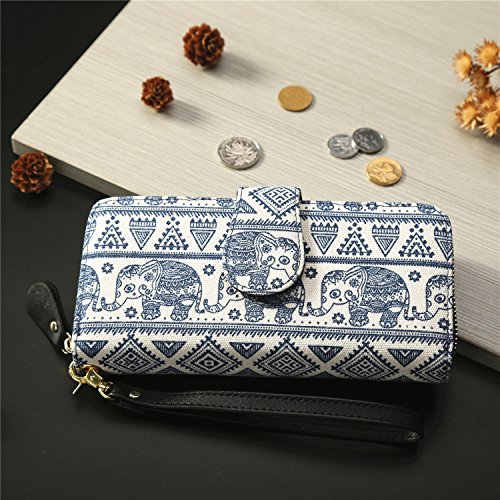 Women Snap Wallet Bohemian Elephant Zipper Purse Long Card Wallet with Strap