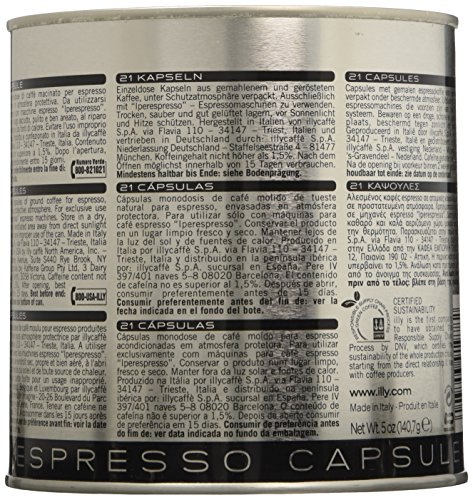 • Each tin contains 21 capsules of illy's legendary blend of 100% Arabica coffee.
