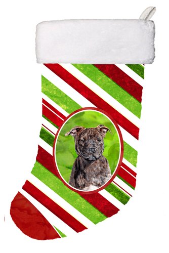 Caroline's Treasures SC9801-CS Staffordshire Bull Terrier Staffie Candy Cane Christmas Stocking, 11 x 18", Mulitcolor