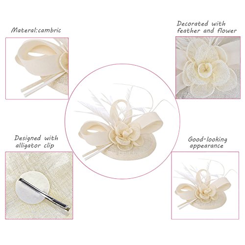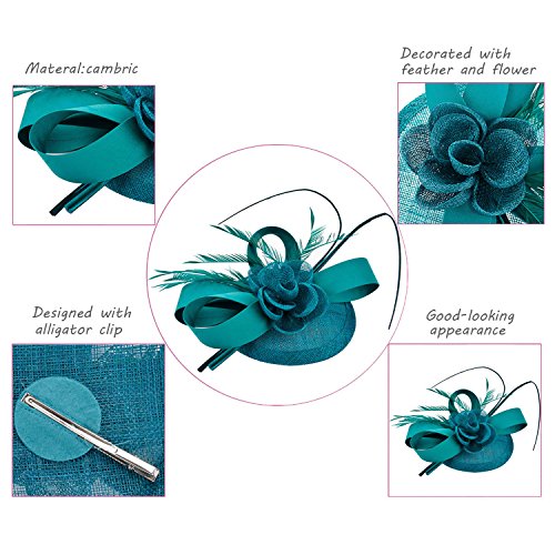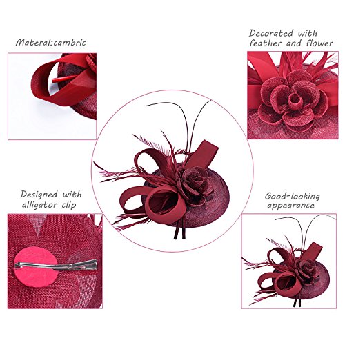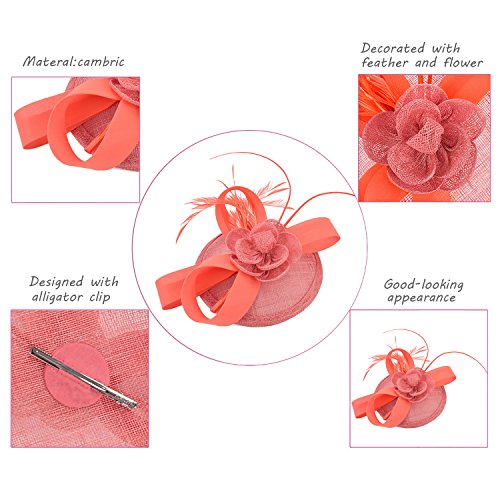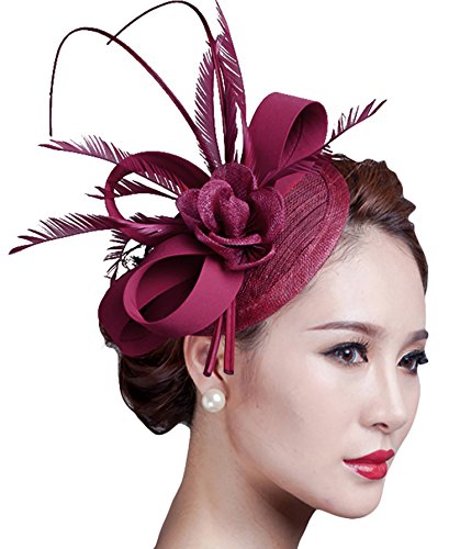 | Fascigirl Sinamay Fascinator Hat Feather Party Pillbox Hat Flower Derby Hat for Women |