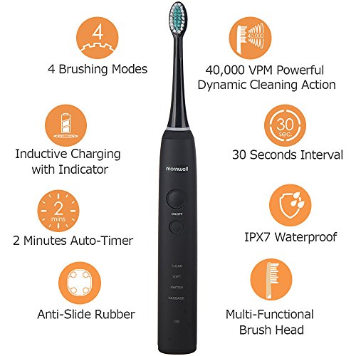 -. Feature : Mornwell D01 sonic electric toothbrush delivers up to 40,000 strokes per minute and removes 10x more dental plaque along the gumline, improving gum health 100% better than a manual toothbrush -. ProductGroup : Health and Beauty -. ProductTypeName : PERSONAL_CARE_APPLIANCE -. Title : Mornwell D01 Electric Toothbrush