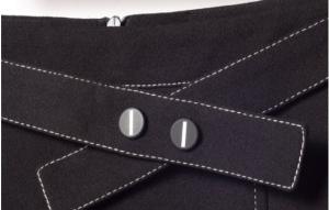 クロスベルトとボタンのデザインが、ウエストやお腹回りもほっそり見せてくれますよ。