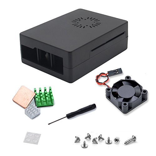 Raspberry Pi 3 Model B+ Protective Case Enclosure Box with Mini Cooling Fan Cooler Heatsink Kit for Raspberry Pi 3 Model B, Pi 2 Model B & Pi Model B+ (Black)