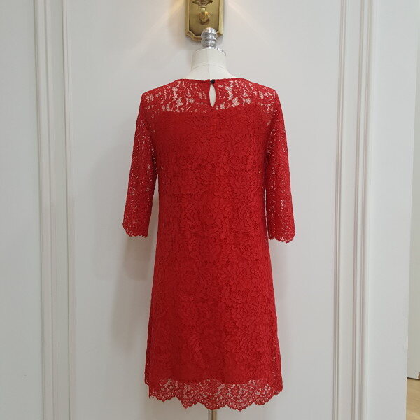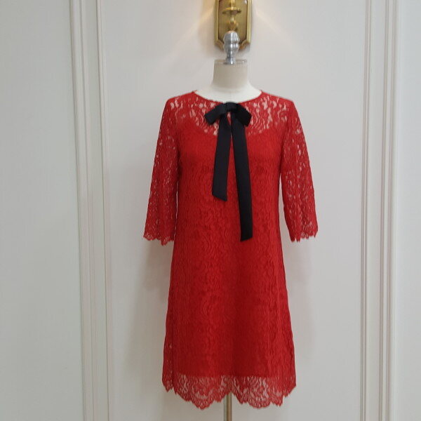 앞 배색 리폰이 포인트인 레이스 원피스.