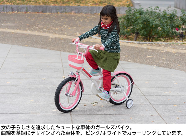 ●なめらかな曲線を基調にデザインされた車体をピンク/ホワイトでカラーリングしています。取り外しが簡単に出来る組立式バスケットを標準装備。子どもが愛せるキッズバイクの誕生です。