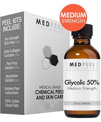 -. Binding : Misc. -. Brand : Medpeel -. EAN : 8526816897976 -. Feature : Addresses fine lines, wrinkles, and more prominent hyperpigmentation / Glycolic acid loosens the bonds between cells, allowing old, dead skin cells to shed off of the skin on a cellular level / Great for beginners or for those wanting to see more results from their glycolic peel / Safe for all skin tones and is best for normal/dry/combination skin type / Made in the USA with no parabens and no animal testing -. IsAdultProduct : 0 -. Label : Medpeel -. Manufacturer : Medpeel -. MPN : 100433 -. PartNumber : 100433 -. ProductGroup : Beauty -. ProductTypeName : BEAUTY -. Publisher : Medpeel -. Size : 2 Ounces -. Studio : Medpeel -. Title : Glycolic Acid 50% Peel 2oz Peel for Fine Lines, Wrinkles, and Dark Spots