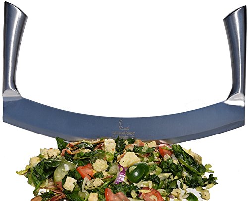 Mezzaluna Knife (Pizza Cutter) Vegetable Chopper for Chopped Salad, Industrial Pizza Rocker Knife (14 Inch Blade)