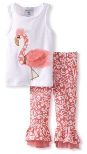 -. Binding : Apparel -. Brand : Mud Pie -. Color : Pink/White -. Department : baby-girls -. Feature : 2 piece set includes a racer back tank with chiffon detailing and large flamingo applique / Cotton damask printed pants have flare leg with mesh ruffle detailing / Top turn inside out, machine wash cold, dry flat, do not bleach, bottom machine wash cold, tumble dry low, do not bleach -. Label : Mud Pie Baby -. Manufacturer : Mud Pie Baby -. ProductGroup : Apparel -. ProductTypeName : SHIRT -. Publisher : Mud Pie Baby -. Studio : Mud Pie Baby -. Title : Mud Pie Baby-Girls Newborn Flamingo Top and Pants Set 2 piece set, cotton racerback tank features large flamingo applique with sequins, gold detailing and amazing chiffon ruffles front and back, with coordinating cotton flare pants