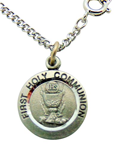 -. Title : First Holy Communion Pewter Medal on a Stainless Steel Chain