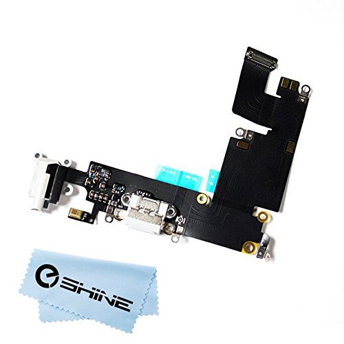 EShine® Charging Port Dock Connector Headphone Jack Flex Cable, Microphone Replacement for Iphone 6 PLUS 5.5" + EShine Cloth (White)