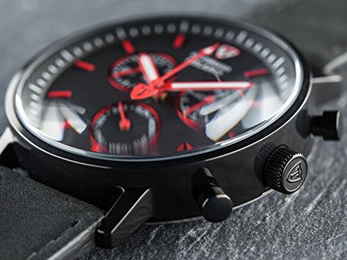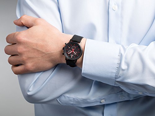 -. Title : DETOMASO Men's MILANO Chronograph Leather Black Red Classic Analog Display Quarz DT1052-O