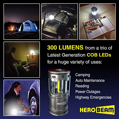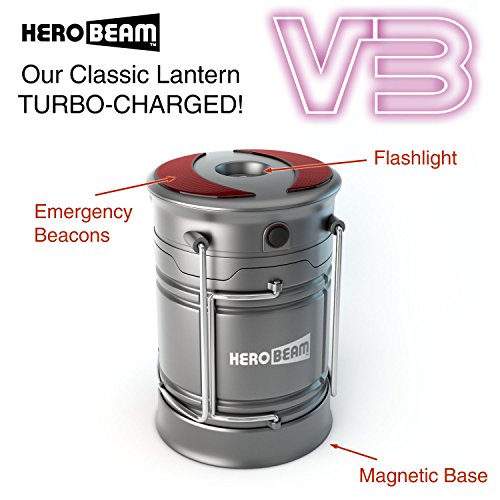 Studio : HeroBeam Publisher : HeroBeam Binding : Kitchen Product Description After years in the LED industry this is OUR BEST LANTERN YET! Featuring the LATEST LED TECHNOLOGY in the form of three 48mm COB strips, this time with WARM-COB® technology giving out a warm and more natural light yet still with our legendary brightness. For this latest V3 version we've not only added a 1W FLASHLIGHT in the top for those walks away from camp but also an emergency beacon with two settings - ALERT and SOS. Ideal for INDOOR OR OUTDOOR USE, as perfect for camping and fishing as it is for keeping in the home for use in power outages or relaxing in the garden at night. The COMPACT collapsed size means you can even keep one in the car for night time highway emergencies such as a flat tire or adding screenwash where the magnetic base makes attaching it under the hood a breeze. BEAUTIFULLY PRESENTED in metallic graphite within an attractive HeroBeam box it also makes a great birthday, Christmas or Thanksgiving gift. Product Weight - 330g with batteries Requires 3 x AA batteries (not included) THE HEROBEAM PROMISE - 30 Day 100% Satisfaction Guarantee 5 Year Warranty