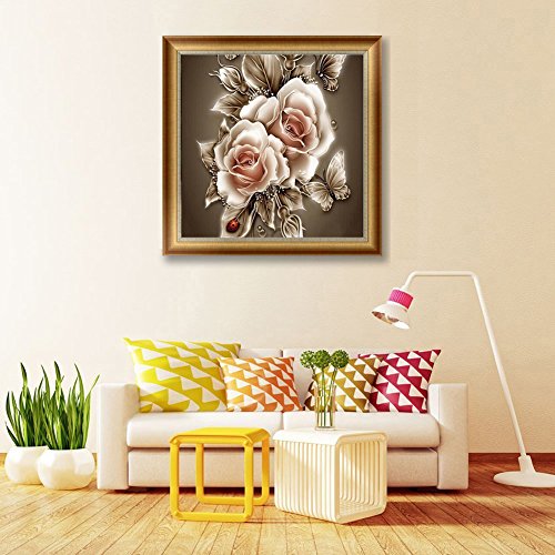 Everydlife 5D Diy Rhinestone Diamond Full Square Drill Painting Cross Stitch Rose Flower & Butterfly Number Kit Set with Square Drill Diamond Butterfly Embroidery Home Wall Decor Arts Craft 14x14inche