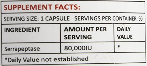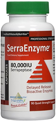 -. Binding : Health and Beauty -. Brand : Good Health Naturally Nutrition -. EAN : 0804879173779 -. Feature : Serra EnzymeTM Can Give Powerful Support for: / Healthy Inflammation / Healthy Digestive System / Healthy Arteries / Healthy Body and Lungs -. Label : Good Health Naturally Nutrition -. Manufacturer : Good Health Naturally Nutrition -. Model : 674077 -. MPN : 674077 -. PackageQuantity : 1 -. PartNumber : 674077 -. ProductGroup : Health and Beauty -. ProductTypeName : HEALTH_PERSONAL_CARE -. Publisher : Good Health Naturally Nutrition -. Studio : Good Health Naturally Nutrition -. Title : Serra Enzyme 80,000IU SERRAPEPTASE (90 QUAD-STRENGHT CAPSULES) **Delayed Release Bioactive Enzymes*** -. UPC : 804879173779
