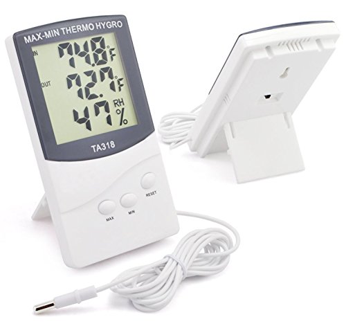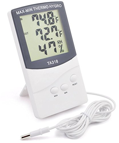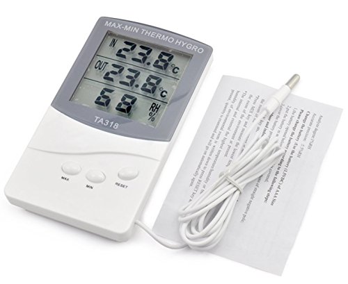 Overview "This temperaturehumidity meter helps you keep track of temperature and humidity indoors or outdoors effortlessly. Just put into a 1.5V AAA battery, the meter automatically powers on and measures instantly with no need for you to press any buttons. You'll only need to press some buttons when you want to view the max or min temperature and humidity values of the period from last reset, or when you need to reset the max/min values. " - Materials: ABS plastic?