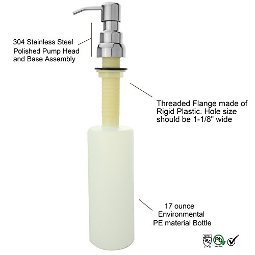 Cozhome Soap Dispenser Commercial Polished SUS 304 Stainless Steel Kitchen Sink Countertop Soap Dispenser, Built in Hand Pump Bottle For Kitchen and Bathroom,Well Built