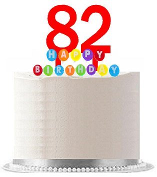 Item#082WCD - Happy 82nd Birthday Party Red Cake Topper & Rainbow Candle Stand Elegant Cake Decoration Topper Kit